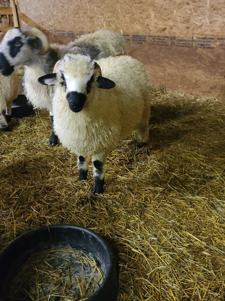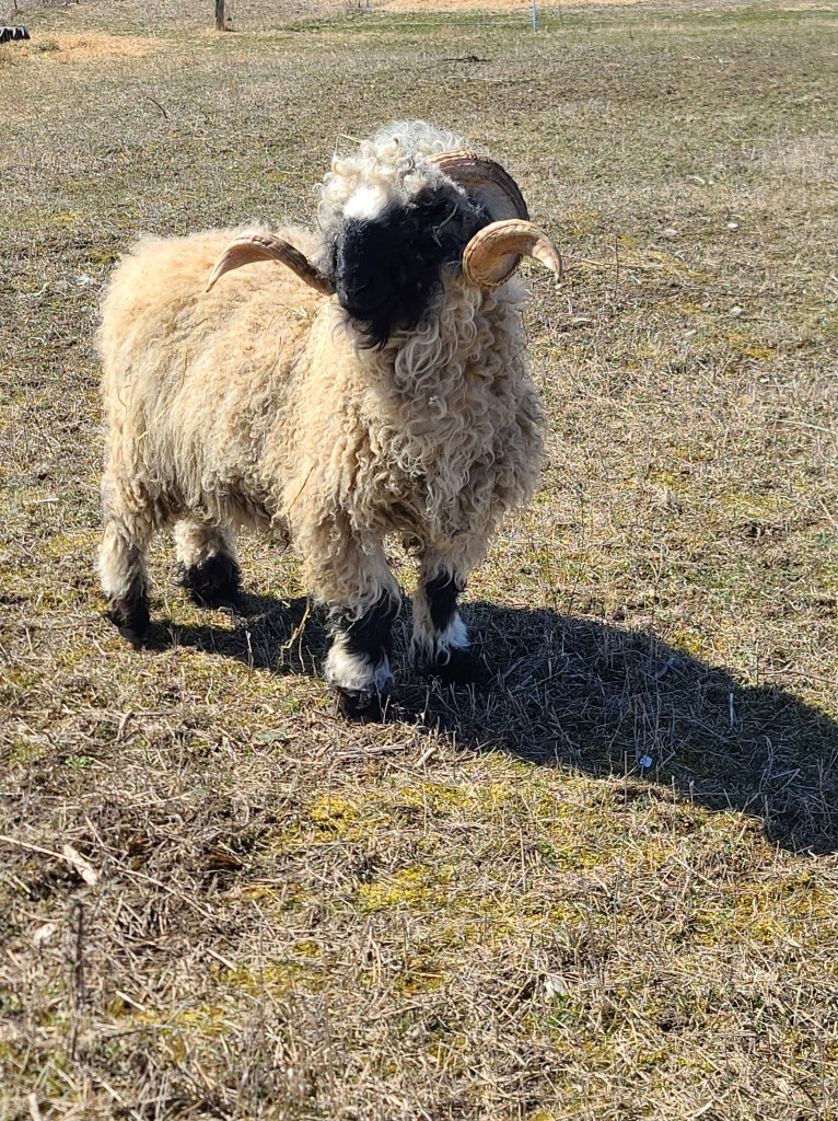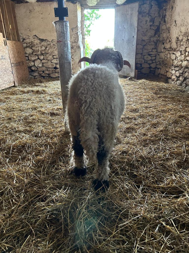 Justice himself is 3 yrs old born March 2021 and ready to serve your ewes for the upcoming breeding season. You have the luxury of purchasing a proven ram. We had 100% success rate with our 14 ewes. He has amazing horns, confirmation and correct valais markings born as a pure blood valais from Embryo transfer.
